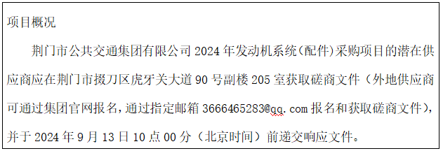 項目名稱:荊門市公共交通集團(tuán)有限公司2024年發(fā)動機(jī)系統(tǒng)(配件)采購項目